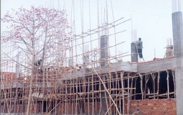灰寨镇马路小学为了解决教师住房问题,学校和村委会发出兴建教师楼的倡议,温建巢兄弟积极响应,乐捐20万元,旅外乡亲温林峰、温建华、温演欧及香港同胞踊跃捐资,共捐款50多万元。右图为马路小学教师楼兴建工地。