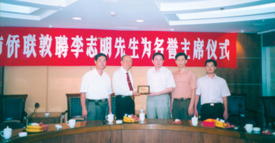 今年8月上旬,市侨联在揭阳宾馆举行了隆重的聘请仪式,市侨联主席黄庆华郑重地向李志明先生颁发了聘书。在聘请仪式上,市侨联主席向李志明先生介绍了建市以来市侨联工作的基本情况,对李先生热心社会慈善公益,特别是对家乡的社会公益事业作出重大贡献,给予高度评价。李志明先生高兴地接受了聘请,在讲话中,高度赞扬了市侨联在侨务工作中所取得的成就,表示要继续关心和支持家乡的公益事业。