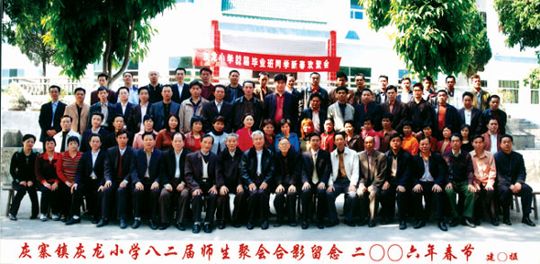 今年大年初三上午,灰寨镇灰龙小学校园一派节日气氛。这里举行灰龙小学82届毕业班同学新春团聚会,50多位同学欢聚一堂,互相问候和祝福,共同祝愿美好未来。光阴似流水,24年过去了,如今大家已成长成人成才,相聚感慨万千。欢聚时间一天,给老师和同学们赠送纪念品,给母校捐赠教育基金三千元。图为聚会合影留念。